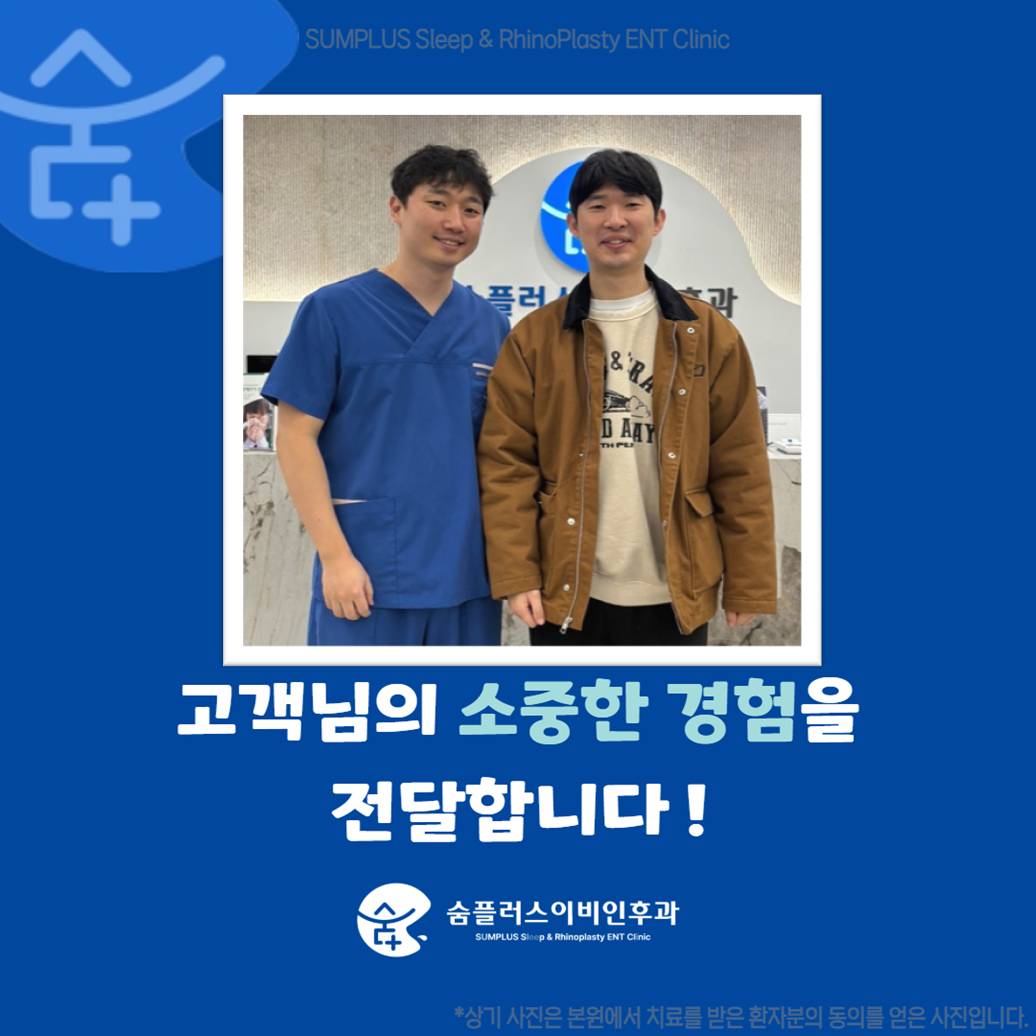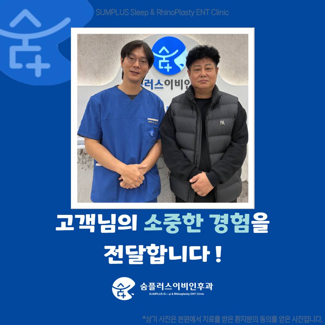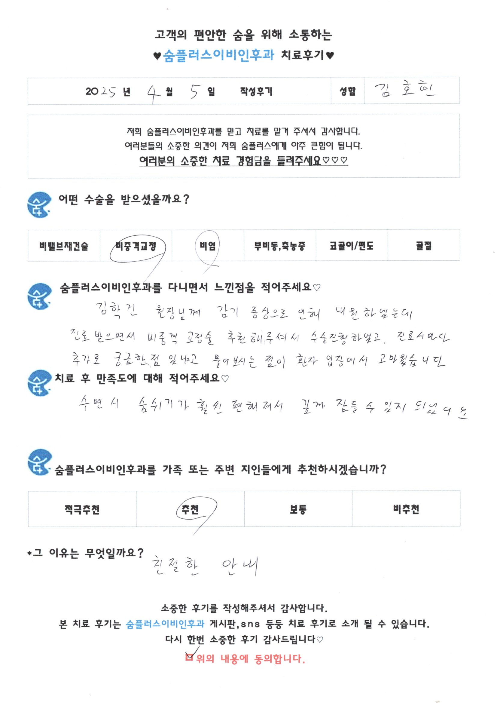 메인페이지로 숨+ 스토리 숨+ 철학 오시는길/진료안내 시설안내 의료진소개 수면센터 하이패스 수면센터 소개 수면무호흡증 수면다원검사 양압기 코골이수술 다중수면 잠복기검사 Natural 숨플러스코성형 Natural 숨플러스코성형 비밸브재건술 유형별 코성형 코재수술 자가늑연골/자가진피 코수술센터 축농증 비염 비중격만곡증 코뼈골절 무통편도수술 어지럼증센터 센터소개 이석증 메니에르병 전정신경염 기타 어지럼증 기타 진료 이명 난청 보청기 처방 및 정부지원안내 갑상선·목 초음파 예방접종 수액치료 커뮤니티 공지사항 상담문의 미디어 치료후기 전후사진 미디어 치료후기 전화문의 메뉴 전체메뉴 전화문의 네이버예약 네이버톡톡 카톡상담 진료안내 숨+ 스토리 숨+ 철학 오시는길/진료안내 시설안내 의료진소개 수면센터 하이패스 수면센터 소개 수면무호흡증 수면다원검사 양압기 코골이수술 다중수면 잠복기검사 Natural 숨플러스코성형 Natural 숨플러스코성형 비밸브재건술 유형별 코성형 코재수술 자가늑연골/자가진피 코수술센터 축농증 비염 비중격만곡증 코뼈골절 무통편도수술 어지럼증센터 센터소개 이석증 메니에르병 전정신경염 기타 어지럼증 기타 진료 이명 난청 보청기 처방 및 정부지원안내 갑상선·목 초음파 예방접종 수액치료 커뮤니티 공지사항 상담문의 미디어 치료후기 전후사진 미디어 치료후기 메인페이지로 상담문의 바로가기 84 비중격,비염 수술 후 직접 작성 해주신 자필 후기 입니다♡ 12-10 비중격,비염 수술 후 직접 작성 해주신 자필 후기 입니다♡ 작성자 숨플러스이비인후과 작성일 조회 1 83 비중격,비염 수술 후 직접 작성 해주신 자필 후기 입니다♡ 12-10 비중격,비염 수술 후 직접 작성 해주신 자필 후기 입니다♡ 작성자 숨플러스이비인후과 작성일 조회 1 82 비중격,비염 수술 후 직접 작성 해주신 자필 후기 입니다♡ 12-04 비중격,비염 수술 후 직접 작성 해주신 자필 후기 입니다♡ 수줍음이 많으셔서 기념사진은 다음에 찍기로 하셨습니다♡ 작성자 숨플러스이비인후과 작성일 조회 2 81 코골이,비중격,비염 수술 후 직접 작성 해주신 자필 후기 입니다♡ 12-04 코골이,비중격,비염 수술 후 직접 작성 해주신 자필 후기 입니다♡ 수줍음이 많으셔서 기념사진은 다음에 찍기로 하셨습니다♡ 작성자 숨플러스이비인후과 작성일 조회 2 80 비중격,비염 수술 후 직접 작성 해주신 자필 후기 입니다♡ 11-14 비중격,비염 수술 후 직접 작성 해주신 자필 후기 입니다♡ 작성자 숨플러스이비인후과 작성일 조회 6 79 비중격,비염 수술 후 직접 작성 해주신 자필 후기 입니다♡ 11-14 비중격,비염 수술 후 직접 작성 해주신 자필 후기 입니다♡ 작성자 숨플러스이비인후과 작성일 조회 2 78 축농증,비중격,비염 수술 후 직접 작성 해주신 자필 후기 입니다♡ 11-05 축농증,비중격,비염 수술 후 직접 작성 해주신 자필 후기 입니다♡ 작성자 숨플러스이비인후과 작성일 조회 7 77 편도,비중격,비염 수술 후 직접 작성 해주신 자필 후기 입니다♡ 11-05 편도,비중격,비염 수술 후 직접 작성 해주신 자필 후기 입니다♡ 작성자 숨플러스이비인후과 작성일 조회 8 76 편도절제수술 후 직접 작성 해주신 자필 후기 입니다♡ 10-21 편도절제수술 후 직접 작성 해주신 자필 후기 입니다♡ 작성자 숨플러스이비인후과 작성일 조회 6 75 축농증,비중격,비염 수술 후 직접 작성 해주신 자필 후기 입니다♡ 10-21 축농증,비중격,비염 수술 후 직접 작성 해주신 자필 후기 입니다♡ 작성자 숨플러스이비인후과 작성일 조회 2 74 비밸브재건, 비중격, 비염 수술 후 직접 작성 해주신 자필 후기 입니다♡ 10-01 비밸브재건, 비중격, 비염 수술 후 직접 작성 해주신 자필 후기 입니다♡ 작성자 숨플러스이비인후과 작성일 조회 9 73 축농증, 비염 수술 후 직접 작성 해주신 자필 후기 입니다♡ 10-01 축농증, 비염 수술 후 직접 작성 해주신 자필 후기 입니다♡ 작성자 숨플러스이비인후과 작성일 조회 4 열린1페이지 2페이지 3페이지 4페이지 5페이지 6페이지 7페이지 맨끝 검색 검색대상 제목내용제목+내용글쓴이글쓴이(코) 검색어 필수 검색 닫기