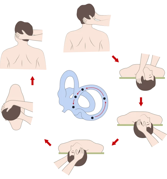전정기관에 있던 이석이 떨어져 나와 반고리관 내부의 액체에 붙어 있거나 흘러다니게 되면, 평형감각 세포를 자극하여 몸이 회전하고 있다고 느껴져 주위가 빙글빙글 돌아가는 듯한 어지럼증이 발생합니다.