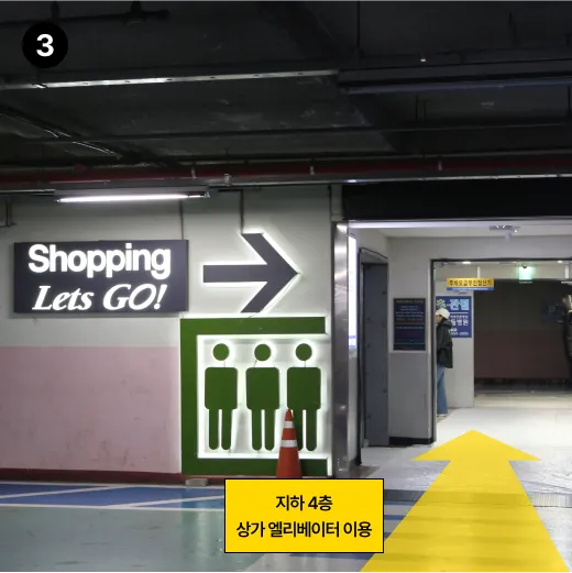 지하 4층에 주차하신 후 상가 엘리베이터를 이용해 3층으로 오시면 됩니다.