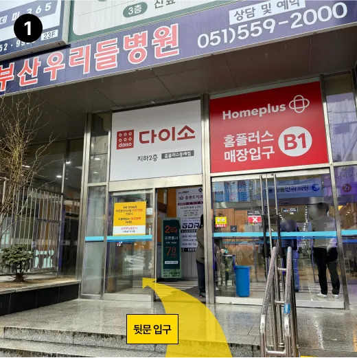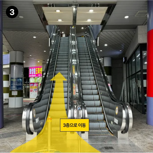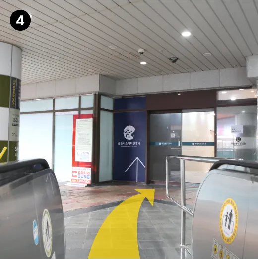 온천장역 5번 출구에서 에스컬레이터를 이용해 3층으로 오시면 됩니다.