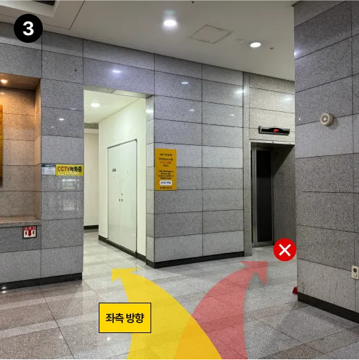 뒷문에서 엘리베이터를 이용해 3층으로 오시면 됩니다.