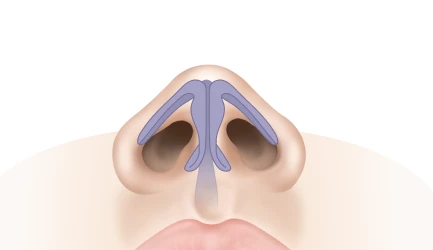 원래 가지고 있는 연골의 각도가 세워져 좁아지고 숨을 쉴 때 와류가 발생하여 코안 공기의 흐름이 나빠집니다.